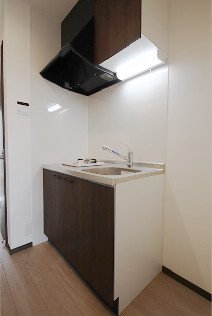 | 部屋設備 | ・システムキッチン(1口のガスコンロ付) ・シャンプドレッサー ・給湯(プロパン) ・温水洗浄便座 ・TVインターホン ・ユニットバス ・エアコン1基 |